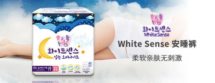 White Sense 安睡裤:内裤式穿着方式,贴身舒适;棉柔面层,柔软亲肤无刺激;超长吸收体,高效吸收,宽边护围不侧漏。